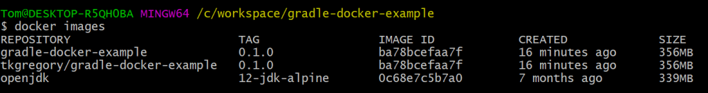 ./gradlew dockerAll done? Run docker images to see that your new image has been built.
