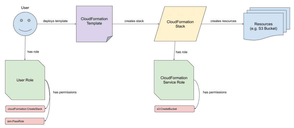 The diagram below how this works, in the scenario where we want to deploy a CloudFormation template that creates an S3 bucket.