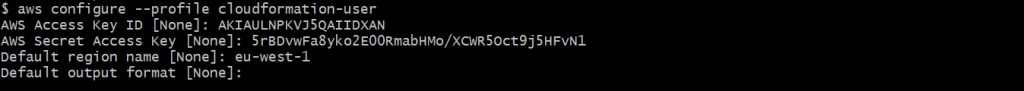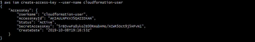 aws iam create-access-key --user-name cloudformation-user