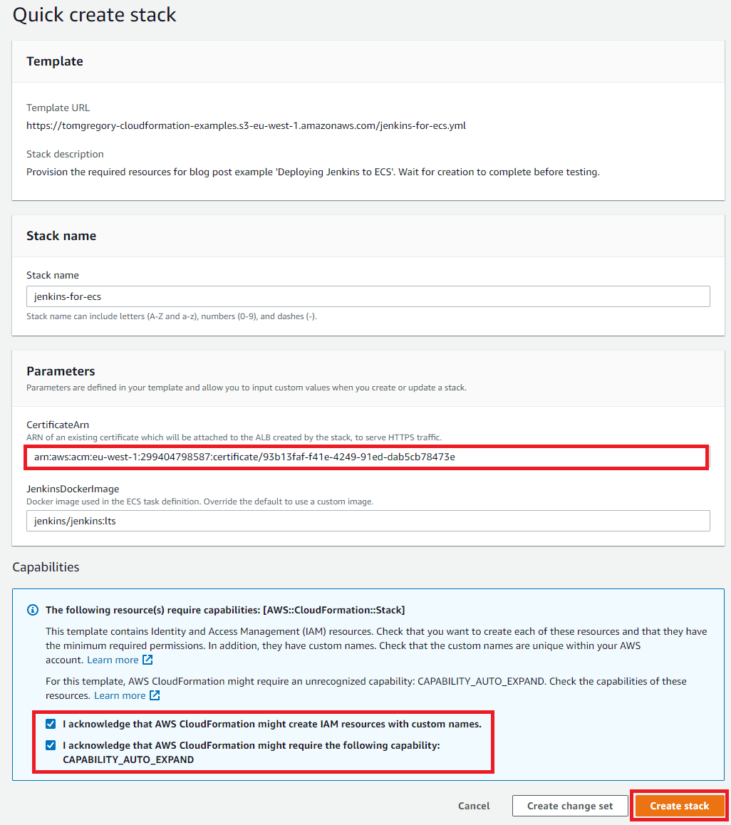 When you click this button you’ll be taken to the Quick create stack page in your own AWS account.