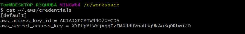 Then they get stored in the ~/.aws/credentials file under the default profile: