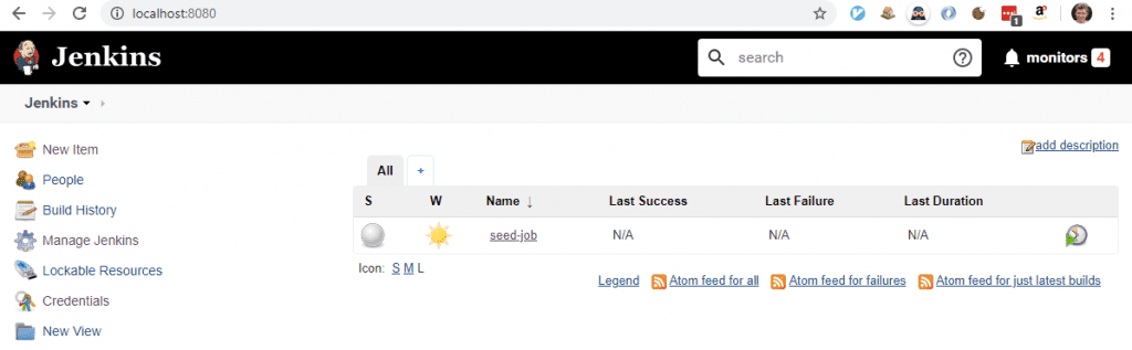 Browse to http://localhost:8080 and you should have an instance of Jenkins running with a default seed-job.