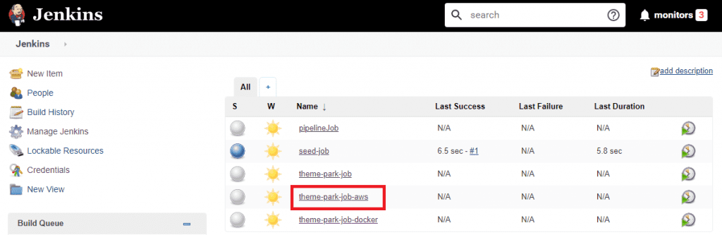 Also, don't forget to update seedJob.xml to point at the correct url and branch name (e.g. theme-park-job-aws) for grabbing the createJobs.groovy file.