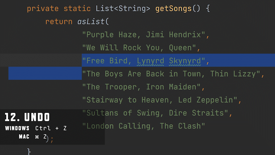 | 11. Move statement | Ctrl + Shift + ↑/↓ | ⇧ ⌘ ↑/↓ |