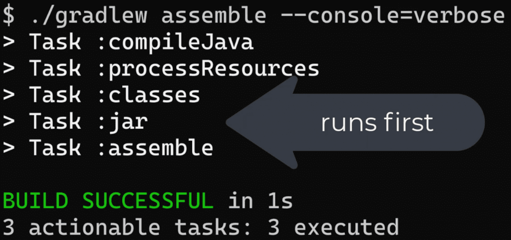So in a Java project when we run assemble, jar runs first, generating a jar file.