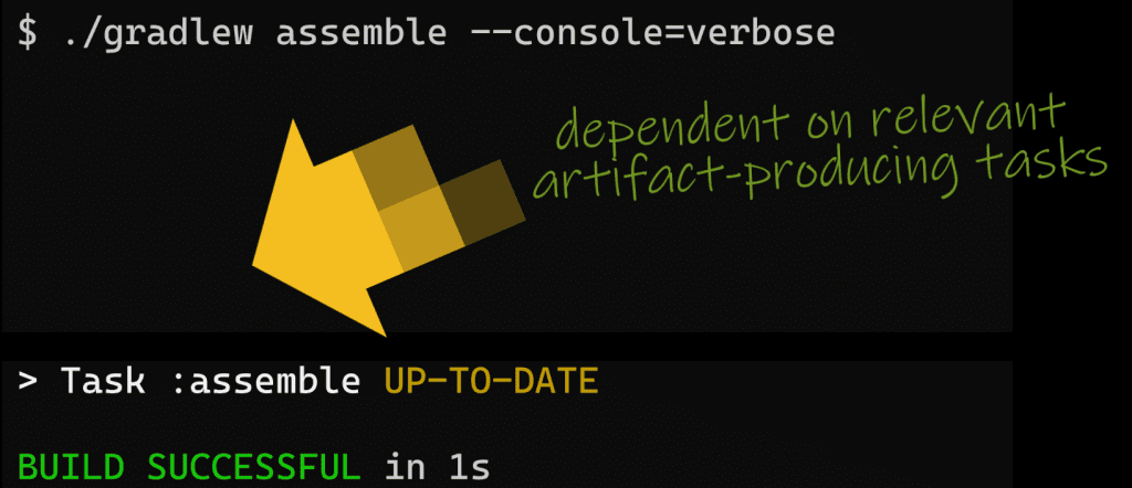 When you run assemble when nothing's changed in your project, it's marked as UP-TO-DATE and no work should be done, saving you time.
