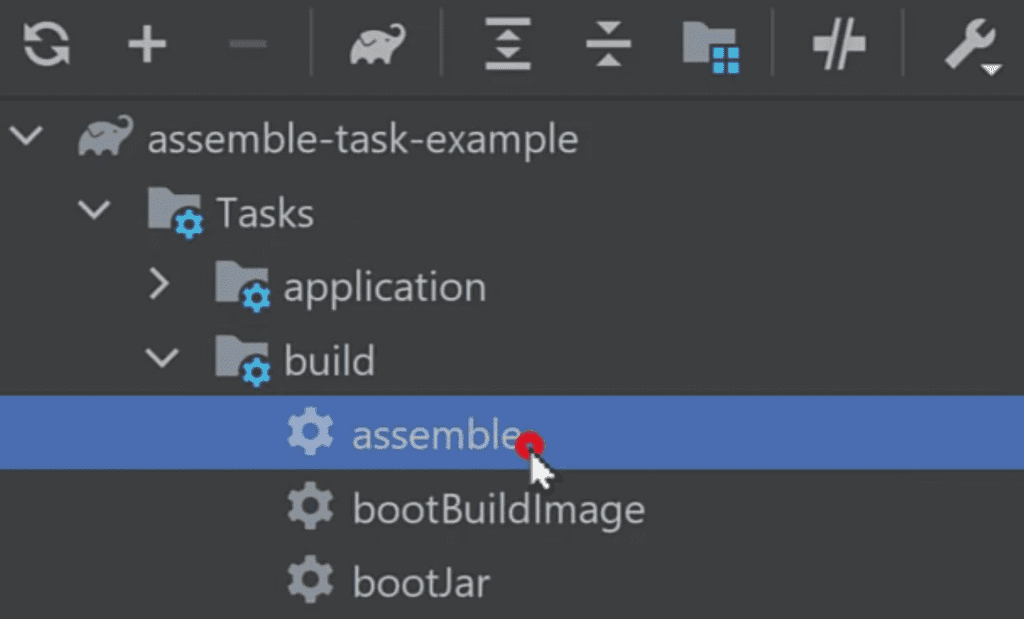 Assemble is a task you run from the command line using ./gradlew assemble in Linux and Mac or gradlew assemble in Windows.