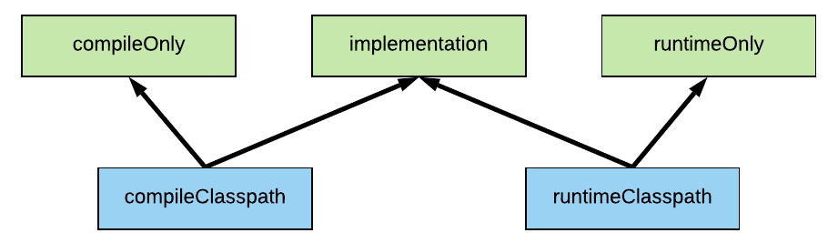 Rule Two Use the implementation dependency configuration if you need the dependency to be on both the compile and runtime classpaths. If not, consider compileOnly or runtimeOnly.