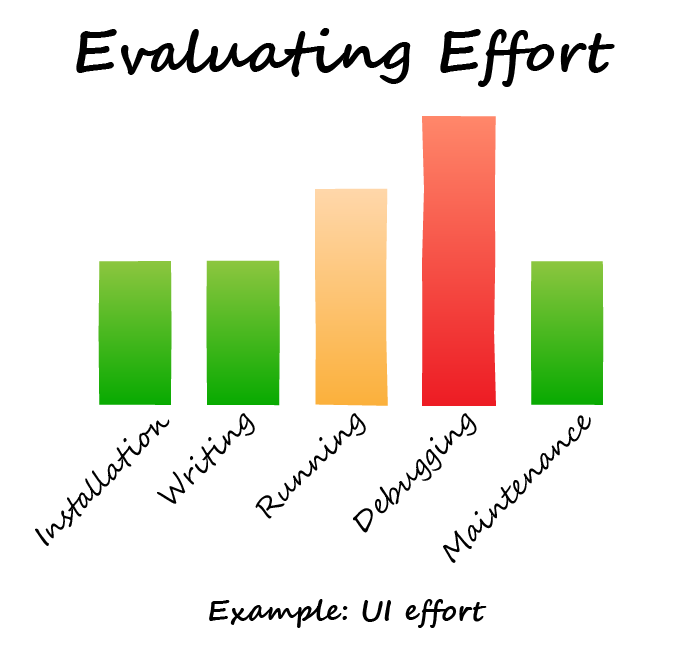 Installation & writing effort comes down to how well a testing tool is documented and your prior experience with it. Running effort is based on the efficiency of your CI setup. Finally, debugging and maintenance effort depends on the specific testing tool you choose and how well you implement it.