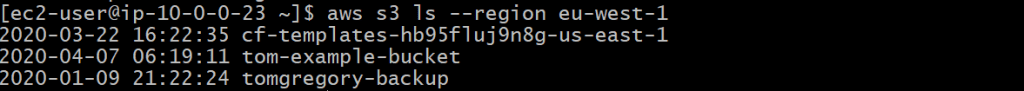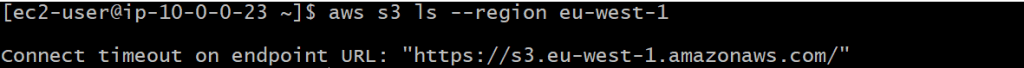 The --region flag is needed in the aws s3 ls call above since the VPC endpoint will be for a specific region. Specify the same region as your VPC.