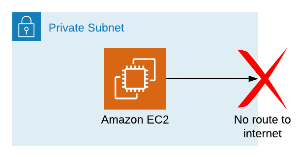 - the EC2 instance is in a private subnet, so has no internet access